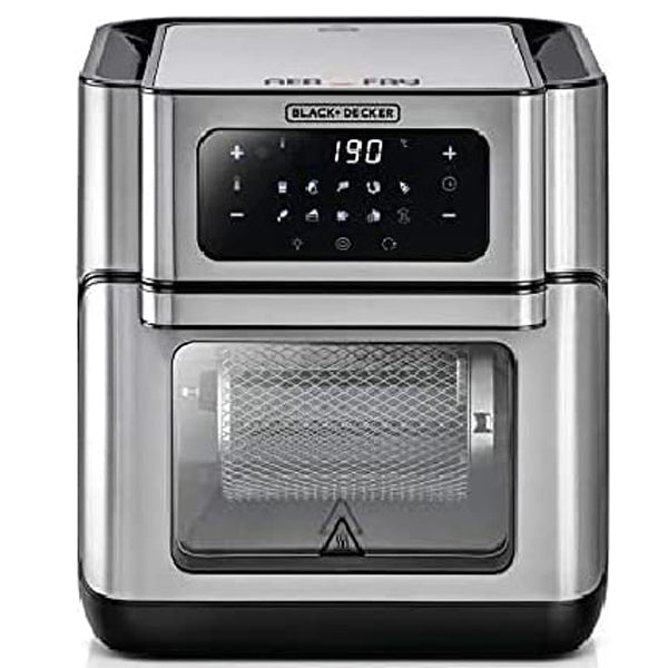 - The Black+Decker AOF100 Oven Aerofry is your ideal choice for healthy tasty food with little or no oil. The large 12L Oven capacity ensures you can cook large meals for the family. The 80 to 200 degree digital temperature controls lets you choose the right temperature for your food for the perfect results. The 90 minute timer offers cooking versatility. The 10 pre-set modes offer the user an easy selection for quick cooking. The LED display with the touch control adds convenience. The transparent door lets you view the progress of cooking. The components are diswasher safe for added ease. The anti-slip rubber feet prevent the unit from accidentally moving.