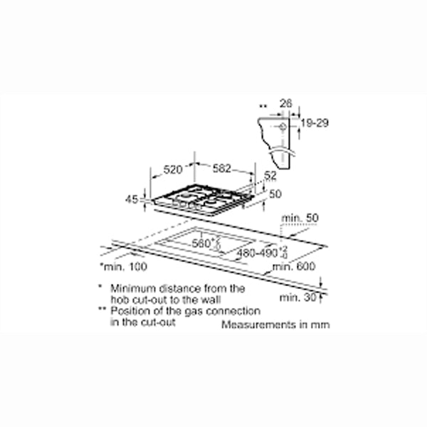 - Min. required niche size for installation (HxWxD)45 x 560-560 x 480-490 mm